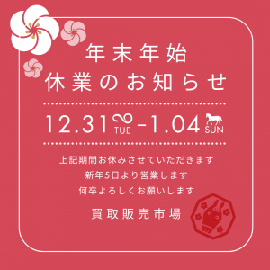 誠に勝手ながら、買取販売市場の年末年始休業日を